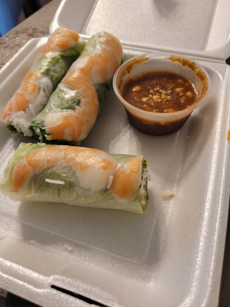 Meals often unfold in a relaxed flow: a refreshing start with cool, delicate shrimp spring rolls dipped into peanut sauce, followed by steaming bowls brimming with rich, fragrant broth and tender noodles. There’s a reassuring consistency here, a quiet joy found in returning again and again to flavors that feel crafted just right, alongside the friendly energy of a spot regularly full of loyal locals.